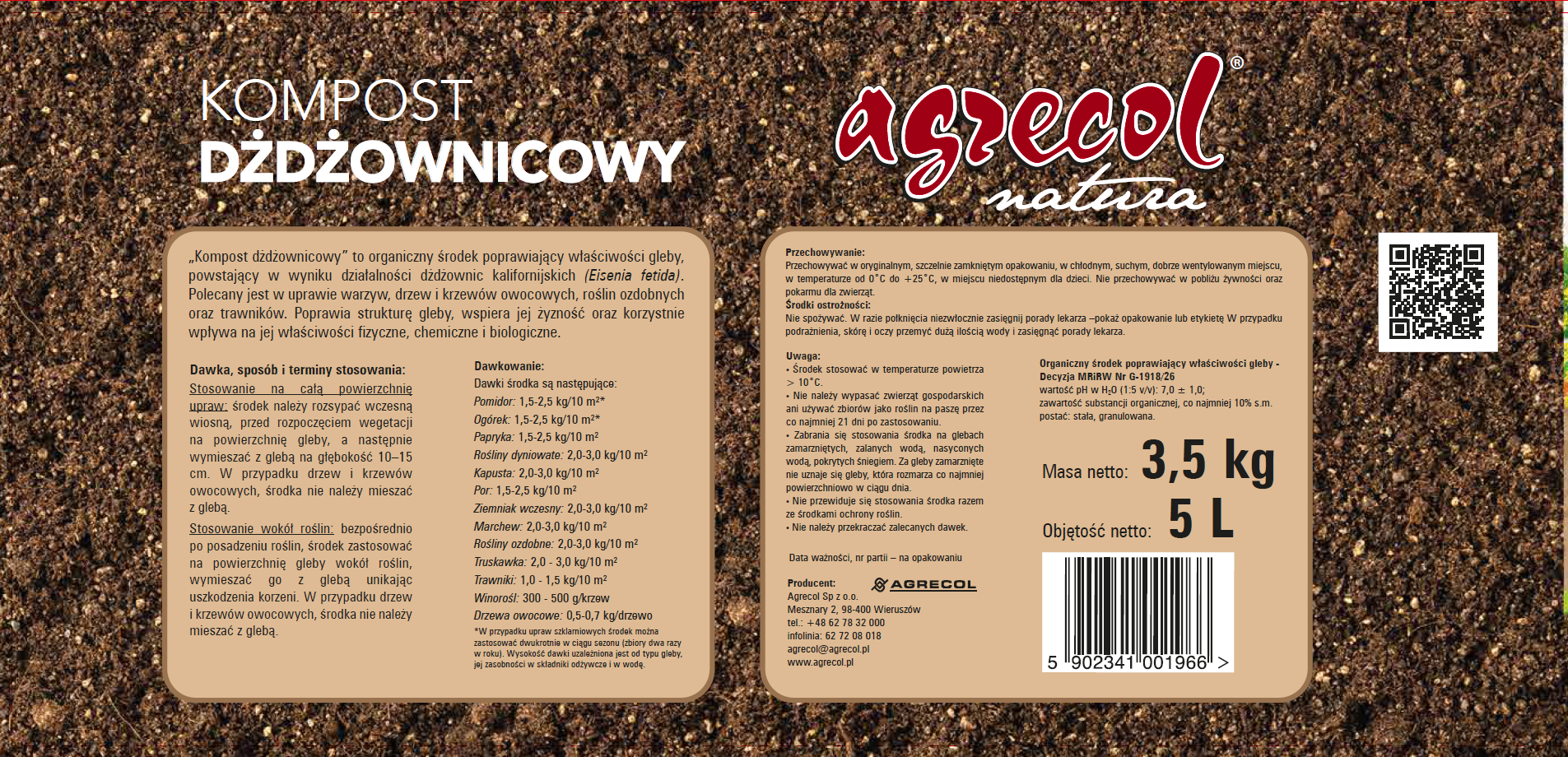 Kompost dżdżownicowy to najwyższej jakości produkt pochodzenia naturalnego. Nawóz ten został wytworzony przez dżdżownice kalifornijskie (Eisenia fetida) i jest przeznaczony do nawożenia warzyw, drzew, krzewów owocowych, roślin ozdobnych oraz trawników. Stanowi on nie tylko źródło makro- i mikroskładników pokarmowych dla roślin, ale również wzbogaca glebę w cenną próchnicę i substancje humusowe. Kompost dżdżownicowy wpływa pozytywnie na właściwości fizyczne, chemiczne oraz biologiczne gleby.