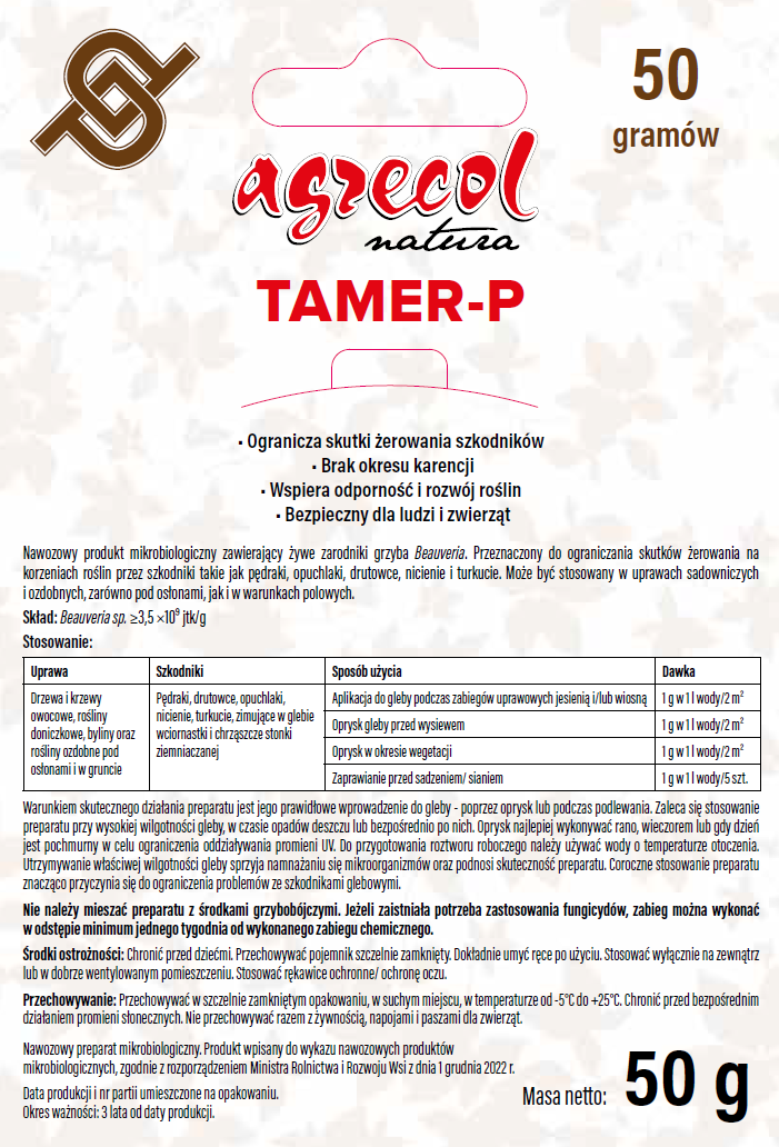 Nawozowy produkt mikrobiologiczny zawierający żywe zarodniki grzyba Beauveria. Przeznaczony do ograniczania populacji szkodników (pędraków, opuchlaków, drutowców, nicieni i turkuci) żerujących na korzeniach roślin. Może być stosowany w uprawach sadowniczych i ozdobnych, zarówno pod osłonami, jak i w warunkach polowych.